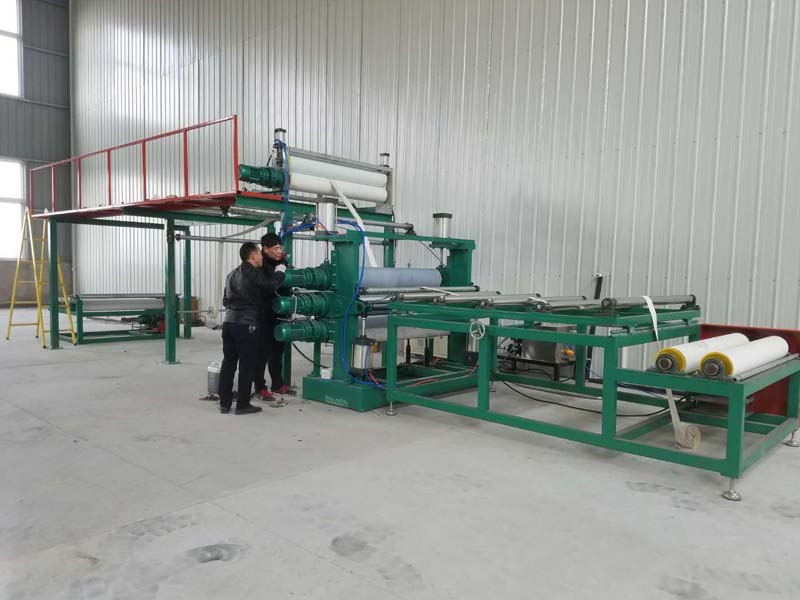 SBS/PP與地毯復合機是將PP/SBS通過塑化擠出,經模具流延成膜后與針刺地毯,面料,無紡布擠壓貼合,該機組具有二層或三層合一的生產功能,該機組經切邊冷卻成型收卷,具有結構先進自動化程度高,操作方便,效率高等特點。