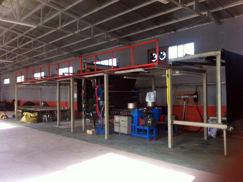 PVC與地毯復合腳墊設備:PVC復合地毯設備是目前市場上較為流行的一種家用及商業地毯。它具有環保,美觀,價廉,實用取用市場的青睞,本公司所生產的PVC及TPR復合地毯生產設備具有良好的穩定性,能連續加工多種規格的PVC底膠復合鋪地地毯,可適應多種片材或卷材培毯,可將卷材按規定的尺寸自動切割成方塊地毯,設備設計合理,操作簡單。